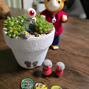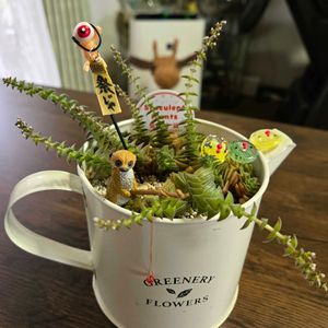 おはようございます🍀 今朝も小雨🌂 冷え込んでいます。 🏷にぃさんの日 参加します💛 かおりんさんの素敵な蝶鉢、蝶缶に、昨日は、エケベリアIN。地植え花壇から、セダムを取ってきて植える予定でしたが、寒くて断念。マイメロちゃんのピックと、先日購入した、くるみ*さんのピックを挿したら、とっても可愛い💕 しばらく、このままでいいかなぁ🥰 今日も宜しくお願いします🌿