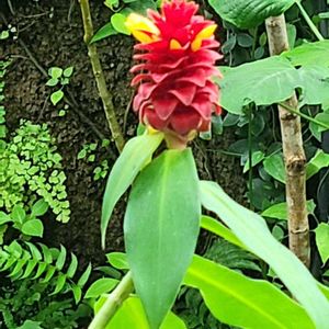 植物園の温室でコスツス バルバツスに出会いました。 元々 熱帯コスタリカのジャングルに ひっそりと咲いている花です。 茎の先端に真紅の苞(ホウ 葉っぱが変化したもの)を付け 苞の間から黄色い花をポツポツと下から上へ咲かせます。 ※このpicでは 黄色い花は出ていませんが…。 気温が15℃以上に保たれていれば 周年花を咲かせるようです。 コスタリカ原産。 オオホザキアヤメ科コスツス属の多年草。