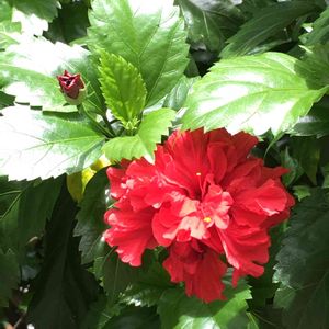 『ガーデンハイビスカス 愛しの八重🌺』 冬越しからの1番花 たくさん蕾はあるんだけど、咲く前にいくつか蕾が落ちてしまいました😭