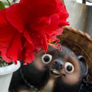 今日の二枚目❣️ 今年GSスタートして、よく登場してる八重の情熱的でピラピラ真っ赤なハイビスカス🌺 少し気温も下がったこの頃の方が、いい感じで、元気いっぱいに咲いてまぁ~す😊💕 両親が亡くなって、形見として実家からお連れした金ちゃんとのツーショット💑 お気に入りの1枚になりそう💖 投稿するばかりで、コメントリターン遅くなって、すみません🙏💦 またチョコチョコ、お返事しまぁ~す😉 今から、体ほぐしにヨガ🧘♀️行ってまいります٩(。•ω<。)و