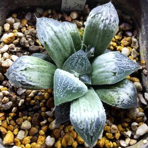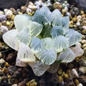 窓が綺麗でお気に入り。 ハオルチア側の慣れで良く育ってくれます ( *˙ω˙*)و 名前は氷河だった気もするのですが投稿時には忘れました😥 花芽が2本あるので近くの葉脈が綺麗なハオルチアとソワソワしておきました。 ノートに記しておいたのですが… 置いたまま散水したので\(^o^)/に。 ○×○ 方式は諦めて ○○交配方式の名前でいこうと思います🙄