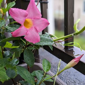 おはよう御座います〜☔ 早朝から雨模様〜 華やかな色合いパット!!周りが明るく輝いて見えるね👏😄🎉🎶 その名は〜マンデラサンパラソルルー夏の花です💖 (去年からの苗)