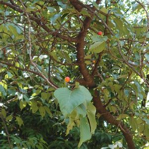 緋寒桜の実 緋寒桜は早いものは 若葉をワサワサと茂らせ 実はこうして色づいてるのを発見!