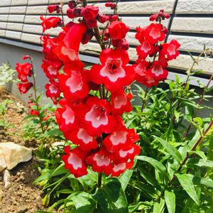 カワイイ顔してるわねっ💕 まわりは赤色だけどのぞいてみたら 中は白色なの💕 "ペンステモン アラベスク"さん 咲き始めましたぁ🥰