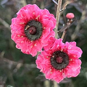1月26日 今日のお花🌼🌼 ギョリュウバイ(御柳梅)💟 英名:Manukaマヌカ💠 フトモモ科ギョリュウバイ属 枝いっぱいに咲いた華やか✨✨✨ 可愛いらしい花です❤️ 1️⃣2️⃣同じ株にピンクと赤い花 4️⃣HCで見つけた😀 一重咲きピンクの鉢植え🪴💕
