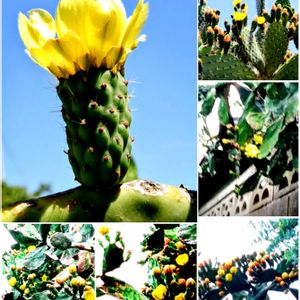 今日のお花 ウチワサボテン 通り道のお宅の塀から覗いていました 以前撮った写真から🤳 コラージュ