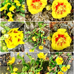 今日のお花 ウチワサボテン 通り道の歩道樹木側に横たわっていました 道路工事👷で掘り起こされて、もうありません。 以前撮った写真から🤳 コラージュ