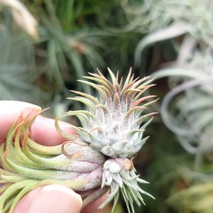 ティランジア セット 村長の直売所よりティランジアセット届きました 今回もゲットできました! 送料かかっても めちゃくちゃお得なセット! なんにしてもひとつひとつがとても状態が良いので大満足! ただ…どれがどれだかわからなーい! なので今回も覚え書きボード作りました! イオナンタシリーズは見分けが難しくて 並べてみました 特に見分け困難なのはクロスと札落ち 札落ちとは札が落ちてなんだかわからない奴だからそもそもわからないもんなんだけど… クロスがどれか分かれば…必然と分かる…はず!! 「イオナンタ クロスの開花は春」とのことなので…ピンクに色づいている子が札落ちとなり 一番大きくてグリーンの子がイオナンタクロス!ということになるね この札落ち ピンクに色づいて美しい イオナンタ フエゴと比べても倍くらい大きいし、ほんのり乗ったピンク色と程よく乗ったトリコームの色合いがなんとも美しい 一体何 なんの札落ちなのか…わからないにしてもとてもお得なセットだ! イオナンタ×エーレルシアナは長さは一番あるけれどまだ細い 太く立派な株にしていきたいな