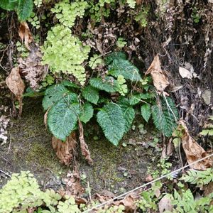 ケイワタバコ(毛岩煙草) イワタバコ科イワタバコ属 丘陵地や山地にある林内の直射日光が当たらない湿った岩崖(がんがい)に好んで生える多年草。 神奈川県にはイワタバコの自生はなく全てケイワタバコと言われています。千葉県もケイワタバコのみのようです。 大きな違いは葉っぱの左右非対称と毛が多いこと。自生する場所には大きな違いは無いようです。 1〜3枚目はケイワタバコの葉です。1枚目の葉で左右非対称が良く判ると思います。花は6月頃開花。イワタバコは夏8月頃の開花なのでケイワタバコは早くに咲きます。 4枚目は切通し、岩と岩の間を通る道 5枚目は朝比奈峠、中世に彫られたのか磨崖仏が残っています。 今年は秋のケイワタバコの実もしっかり見に来よう♪