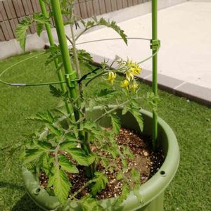 順調👍🏻順調👍🏻今日は帰宅後、大きくなったプチトマトの支柱を取り替えました😊実がなり始めたのが、とっても嬉しいです🥰