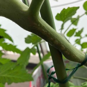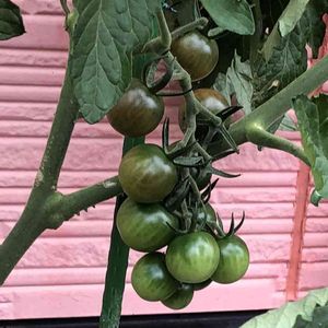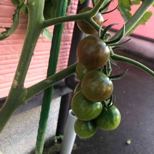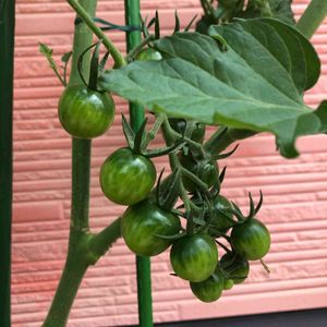 ミニトマト🍅トスカーナバイオレット ある日見てみると、主枝と脇芽の太さが同じで、どちらがどっちか区別がつかない😳🤔 木ボケとはこのことか⁉️というくらい逞しくなってしまった。 色々調べて水やりは控えてと肥料を止めてると、小さな花芽の中に小さな実を発見、心配してはホッとする毎日。これが楽しいのかな😆