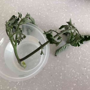 不注意でポキッと折ってしまいました😢 薄皮1枚繋がっていたので、接木の様にして修復を試みたのですが、一晩たってグッタリしていたので、切り離し、とりあえず水につけてみました 申し訳なさすぎて顔が見れないです🙇♀️💧