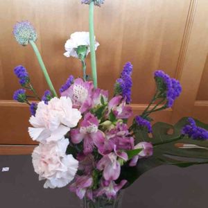 エントランスの花。 ギガンジウムと利休草をシンプルに飾って……♡♡