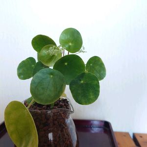 ピレアペペロミオイデス。。。 呪文のような名前 ちょっと目を離していたら(忘れていた) お花が!!!! そして下から小さな葉っぱが✨️✨️✨️ かわいいです♡