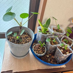 ペペロミオイデスが、明らかに、鉢の許容範囲を超えてきてます💦 株元が窮屈そう、つまり根っこも同様のはず 根鉢を崩して、株分けが良いのでしょうか このまま、一回り大きい鉢に植えたら、ただ、おおがらになる気がして… 半年前のコンパクトがかわいいので、元のサイズに戻って欲しい🙏