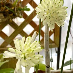 Den.purpureum v.alba 原種のデンドロビウム 白いポンポンが可愛いです。 ② バルブの長さが2m近くあるの で、全体像が写せません。