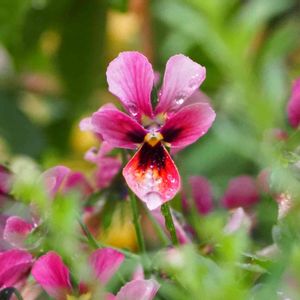 雨上がり𓂃🫧 おはよ☺️って声かけたら ピンクのおじさんビオラが「おはよ」って 顔を出したよ☺️ おやすみなさい🌙𓈒𓂂𓏸