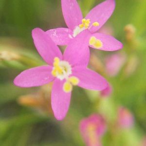 ハナハマセンブリ(花浜千振) リンドウ科 シマセンブリ属 花期6〜7月 道端や空き地に生える地中海原産の花 北アメリカにも帰化している 日本では太平洋沿岸、瀬戸内海、九州北部に多く、都市付近に分布している様です 全体は無毛で、茎は4稜で中空、直立して分岐し、高さは20cmくらいになる 葉は先が尖った倒針形で、根生葉はロゼットにはならない 直径8mmくらいの5裂した桃色の花を多数つける よく似たベニバナセンブリは、薄い桃色で花の大きさが1〜1.3cmで根生葉はロゼットになる違いがある シマセンブリ属の特徴で、ハナハマセンブリの雄蕊の葯は、花粉を出した後、捻れる事が分かっている 花のアップで見えます どうして捻れるかはネットに考察されています。難しいのでやめます。 また、雌蕊と雄蕊の長さが違うものがあり、雌蕊の長い花、雄蕊と雌蕊が同じ高さの花がある 雌蕊が高く、雄蕊が低い花は他花受粉を望んでいるのかもしれない 又、夜花が閉じた時に花の中で受粉をする事もできる(自家受粉) 花は夜閉じて、3日間程咲く様です 15日から双子ちゃんのお世話で娘の住んでいる大阪に来ています 息抜きにすぐ近くの芥川周辺のお花を散歩しながら観察中です
