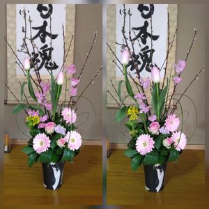 今日のお花 💠ガーベラ💠 ひな祭り🎎 (22/02/26日のフラワーアレンジメントレッスン)
