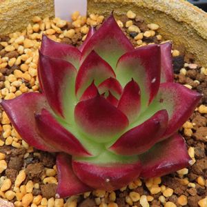 暑くなるにつれて黄緑が増えてきたエケベリアのロビン。赤の濃さに比べて黄緑が鮮やかな色なので目立つ存在。 熟れた果実が時間を遡って戻っていくようで面白い。