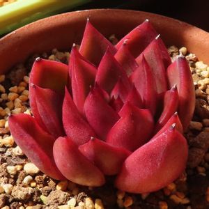 冬の間ずっと真っ赤だったエケベリアのロビン。春になってもまだ色がさめる気配がない。 気がつけば秋に投稿したときよりも葉数が増えていた。まだギュッと締まった形だけど,もう少し経って少し開いた時の方がきれいに見えるかも。