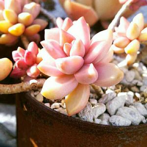 😅😅我が家の寄せ植えの中に居るクラッスラ属 アルバなんだけど、小さくなってる。 ずっと元気だったのに少し前の雪が当たったのかな?外じゃダメなのかな? アルバだけ救出して家の中の方がいいのか? 悩むところであります。