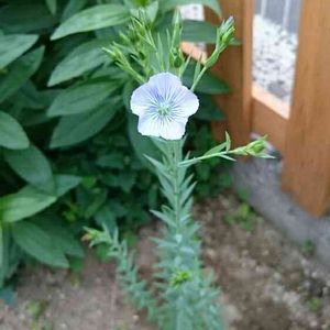 姉にアマニの苗を貰ったので花壇に植えてみたら今朝花が開きました~~💙 いっぱい増えるのかな?楽しみ~~(*ˊૢᵕˋૢ*)ෆ⃛