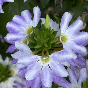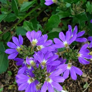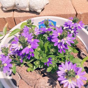 サンクエールブルーグラデーションこぶし大の株から花が広がり始めました♪鉢が隠れるくらいにこんもりするのが楽しみです