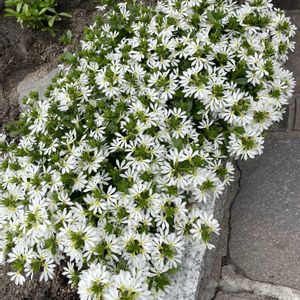 おはようございます 玄関先の敷地内に サンクエール 鉢いっぱいに咲いていました 2枚目は花いっぱい💜🤍