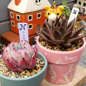 おはようございます🍀 爽やかな朝です🤗 🏷️peanyatsの日 1枚目は、先日、お迎えしたpeanyatsのリメ鉢。 どちらも個性的で可愛いです💕 2枚目は、昨年11月、薔薇フェスで購入した1本100円の薔薇(11月10日投稿) その後、太そうな枝を何本か挿し木しました。その1本が蕾をつけ、咲き始めています🥰 3枚目は、久しぶりにホームセンターに行き、多肉以外のお花を買って、植えてみました。 多肉に出会う前は、夏は、ニチニチソウか千日紅、直射日光にも、雨にも強いので、だいたい決まってました🤗 1株でこんもり咲くらしい、サンクエールも買って植えてみました🥰お庭が少し華やかになりました💕 今日も宜しくお願いします🌿