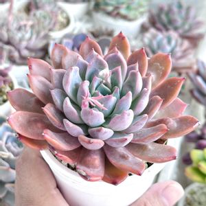 自分への誕生プレゼント① 渥美園芸産ラグリマ💞 いや、最近単品通販でリエール苗お迎えしたしエケベリアはもうやめとこう……と思ったけど、 赤爪✨お粉✨むっちり✨ のあまりに好みなビジュアルに我慢できなかった子です😂 本当はもっとぎゅっとした可愛い子も居たけど、群生好きなので多頭の子を選びました😊 可愛くするぞ〜!