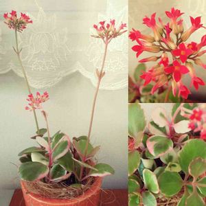 種類はわかりませんが、葉っぱが気に入ったカランコエです。 可愛い花を咲かせています。