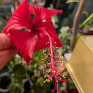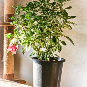こんにちは 去年お得にお迎えした ハイビスカス🌺 葉が斑入りなんです😊 冬越しして やっと咲きました😀 お水切れして だらりんと下を向いていたので たっぷりお水やりしました 蕾 いっぱいあるので お花 これから沢山咲きます🌺