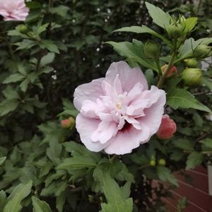 今日のお花、ムクゲです☺️ 毎年たくさん咲いてあちこちでこぼれ種から苗が育っています😅 その中で…なんと斑入りの葉の株が(2枚目以降pic)😳‼️ 斑入りの葉の株はまだ咲いていませんので、親株の花です… 昨年、斑入りの葉に気付き、冬に鉢植えにしよう…と思っていたのですが、機会を逃してしまい、そのまま育っています…こんな場所で大きくなったらどうするのか⁉️🤣 今年の冬には移植しなければ…どこへ⁉️🤣