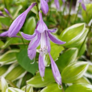 今日のお花🔸ギボウシ🔸 斑入りが好きで数種類のギボウシを楽しんでいます💚🤍💛🎶 ① 今咲いているコバギボウシ🤗 魅せられる花色のギボウシです✨💜✨ ④ 1番早く、6月に咲いたオオバギボウシ🤗 葉芽が出てくるのが1番遅くて、駄目になってしまったのかなと毎年やきもきさせられるギボウシです🤭