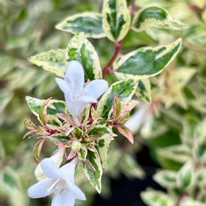 おはようございます☀️ 今朝のお花は 斑入りのアベリア🤍💚 名前は忘れちゃいました☺️ 大分前にお迎えしたのに お花があまり咲かず 昨年 日当たりの良い場所に植え替え 上に伸びるようにしたら大きくなってきました🎶