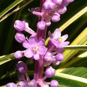 斑入りヤブラン💚🤍 猛暑でも美しい葉を保って涼しげに、可愛い花を咲かせ始めました💜🎶
