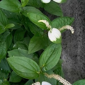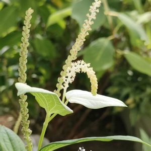 今日のお花*ハンゲショウ グリーン💚&ホワイト🤍 涼しげな葉っぱ🌿が魅力デスネ😍 ⭐️ ハンゲショウの葉が2色になるのは花が咲く時期に、葉緑素が抜けて白くなるためで特に茎の先端近くの葉が白くなり、他の葉は緑色のままなのは虫を花に誘引するための「半化粧」とも呼ばれる現象です… 《スライドpic》 ①~④ 里山散歩🚶♀️の出会いより… 4枚目はお花をアップにシマシタ💖