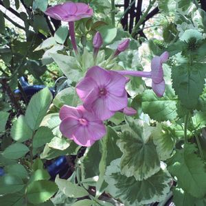 夏に強いランタナ 小さな鉢に植えてしまった斑入り葉の黄色 植え替えようとしても鉢にくっついて植え替え出来ないのに 毎年少しお花を咲かせてくれます いつからあるのかピンクのランタナは毎年強剪定しても地面から出てくる 種も落ちないように早めに切ってます