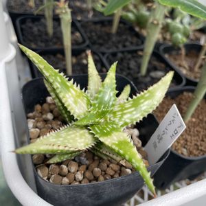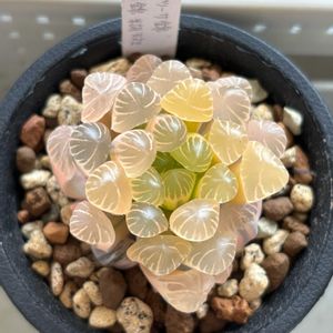 昨年秋に植え替えしたものの外葉がカリカリになってきていたOB-1錦の糊斑株です。 植え替えした時白い根が一本だけだったのですが、その後外葉もたくさん枯れてきていたので思い切って抜いて根を確認してみたのですが…もう一本伸び始めていました🥹✨(4枚目pic) ただ、根は少ないのは相変わらずで、さらに水やり後10日くらい経っているにもかかわらず鉢土の下の方がほんのり湿っていたので一回り小さな鉢(3号→2.5号くらい?)にサイズダウンしました。 今までは肥料入りの多肉用の土を使っていましたが、今回は無肥料のものにしました…粒が大きすぎるかもしれませんが…💦 この強行植え替えが良い結果になるといいのですが…🙏💦ドキドキです💓