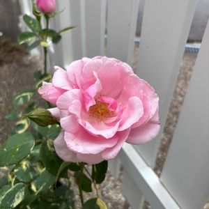 斑入りのバラ、ヘルシューレン🥰💕 今週初めに奈良県橿原市のおふさ観音にバラを見に行きました。 鉢植え中心のバラが満開で、何度か行っていますが今年が一番見頃で、平日にもかかわらずすごい人、人、人…😆💦 目と花で堪能して来られました✨😭💕💕 毎年、バラ苗の出張販売が行われているのは知っていて、週末限定だと思っていたのですが何故か?その平日も開催していて、買うつもりはなくひやかし半分で覗いたら…ヘルシューレンに出会い連れて帰ってしまいました🤣 ヘルシューレンは以前、ホームセンターで苗を買って育てていたのですが、色々あってお世話ができない時期を経て枯らしてしまいましたが、よく通る道沿いに育てている家があって、毎回「やっぱりいいなぁ」と通るたびに思っていました(笑) またどこかで見つけたらお迎えしたいなぁ…と思っていたのですが、近所のホームセンターや園芸店ではなかなか見つからず…🥲ですので今回出会えて即お迎えを決めました🤭💕…電車で来ていたにもかかわらず🤣💦 新聞紙で巻いて、大きなレジ袋に入れて下さったのですが、やはりバラ、棘が袋を突き破ってチクチクするので、電車で持ち帰るのは大変でした🤣幸いそんなに混んでいる路線&時間帯ではなかったのですが、微妙に力が入っていたらしく腕が筋肉痛になりました🤣 そんなこんなで我が家に来てくれたヘルシューレン💕 次は枯らすことなくお世話を頑張ります💪 🏷️2のつく日は斑入りの日 🏷️木曜日は桃色 🏷️ピンクワールドへようこそ に参加します🥰
