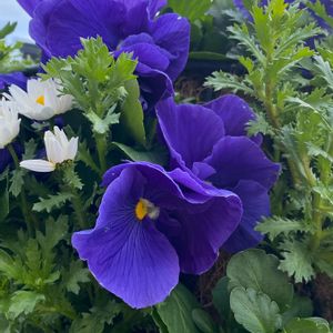 パンジーの寄せ植え こちら庭の東寄りにあるウッドデッキ上で 冬の間、日当たりイマイチでした🥺 やっと日照時間が長くなり 眠れる森の美女たちもお目覚めです🥰 ①パンジーは手前が夢見るパンジー わんだーしぇーどさん♥ 小ぶりです 奥が絵になるスミレ マリーヌさん💜 フリル強めで真ん中のイエロー見えません 大好きなブラック&シルバーのリーフ🌿を 合わせました🖤🤍 ②反対側から🤳 マリーヌさんの花弁の縁が傷んでます😢 昨日の爆風🌪️のせい? 黒葉スミレのラブラドリカさんも 咲いてきました❣️ ③ラブラドリカさんアップにしても小さい💦 そして葉っぱ🌿も傷んでます🥲 🏷シックな大人色♡ 🏷シックな花色舞踏会 🏷アンティーク色の世界 🏷シックな水曜日 🏷素敵な水曜日 🏷水曜日はスミレ 🏷愛しの紫 🏷癒しの薄紫 🏷秘密の花園♡ 🏷花咲く乙女たち♡ 🏷スライドショー♪ 参加させて下さい♥💜🖤