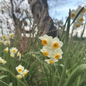 〜日本水仙〜 🏷️火曜ベンチ 🏷️桜の木 🏷️青い空と海 🏷️葵い空 桜の花早く咲かないかなぁ~ ベンチのひとりごと。.:*🌸 別府市両群橋(桜)広場 2025年2月下旬