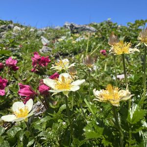 秋田駒ケ岳の夏花たち🗻 チングルマは全て綿毛に、 綿毛の中で咲くのは、 右上にアップのエゾツツジ(蝦夷躑躅) 本州だと、こちら秋田駒ケ岳と、岩手山と、早池峰山にしか咲かない高山植物です。 その他は コマクサ🐴と、 クルマユリ、 ミヤマリンドウ……夏ですね🎐 2025.7.26📷️ 秋田駒ケ岳にて