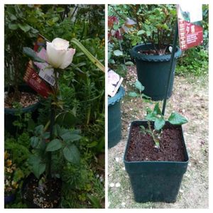 ホームセンターで物色してきたバラの新苗 "夕霧"。 早速6号鉢へ植え替えました。ちょっと育てにくいと思われるHTを可愛がってみたいと思います。