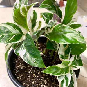 (今日のカラテア) おはようございます♪ 昨日に引き続き、カラテアの森🌳(小)の子達の成長をご紹介します☺️ ビッタタさんです😊 我が家のカラテアの中ではゆっくりめなお育ちです😅 育ち方の波があるのか?葉が出てもすぐ枯れたりしていましたが、ここ最近は何が変わったのか順調に育ち、葉数も増えてひとまわり大きくなりました☺️ 白とグリーンのコントラストがキレイな子です😍