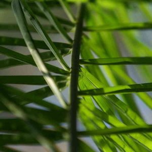 「チャメドレア メタリカ」 小型のヤシで光沢のある矢羽根状の葉っぱが カッコよくインドアの鉢植えに最適です よく「テネラ」の名前で流通していますが それは間違いで本来の「テネラ」は原産地の メキシコ・コスタリカなどでは絶滅に瀕して いる希少種だそうです