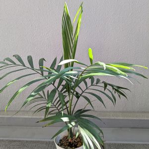 おはようございます😊 今日のお花 濃い緑色の 細長い葉がきれいな テーブルヤシです🌿 園芸店で見つけました😀