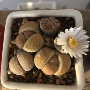 リトープスさん 初めて花が咲きました🤗 ツボミを発見して📸 お水をあげてる間に開花してましたー なのでまた📸 生命力に驚きです すごい✨ 3枚目デザートローズさんがここまで真っ赤になるのも初めて見ました🤗美しい✨