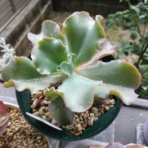 ①このヒラヒラエケベリアのジャイアントブルーはお水が好き お水をあげるとぐんぐん大きくなります🤭 今回こそデカベリアにできるかな🎵 ②デザートローズとルシー ポコポコ子株が生まれて途絶える事がありません どんどん増えます😁 いい色になってます